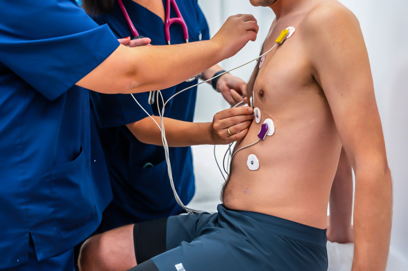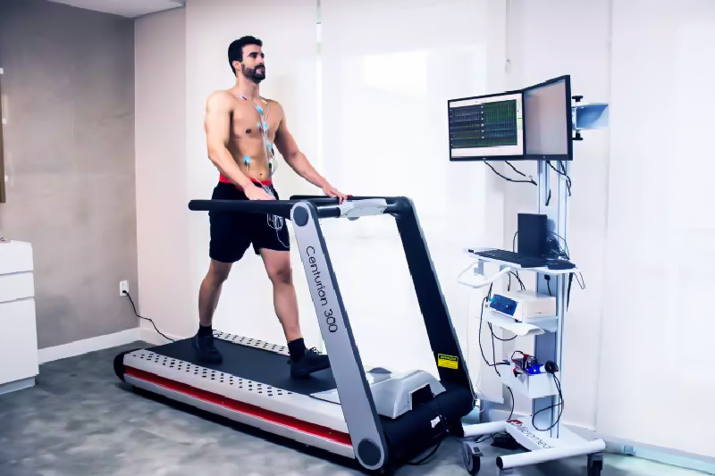 O teste ergométrico avalia como o coração reage ao esforço físico. O paciente caminha ou corre em uma esteira com monitoramento contínuo do ritmo cardíaco e da pressão arterial. Serve para detectar alterações do coração que aparecem durante o esforço, como arritmias ou falta de oxigênio no músculo cardíaco.